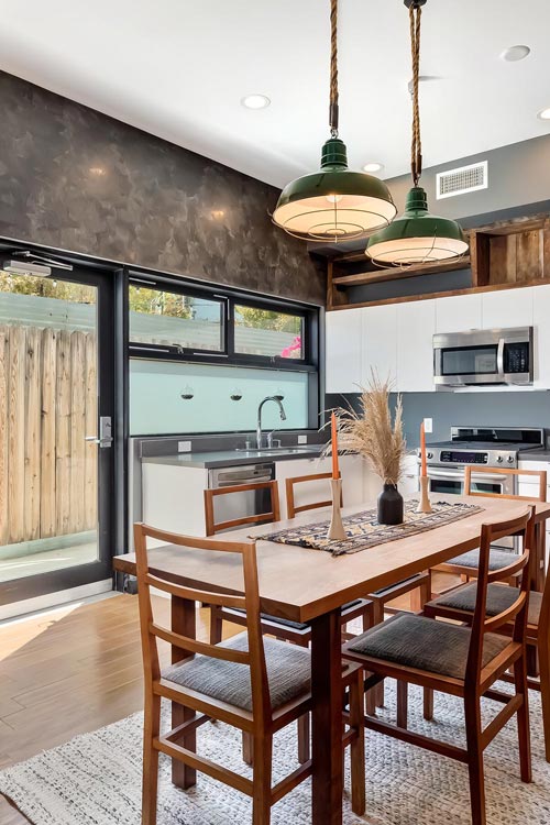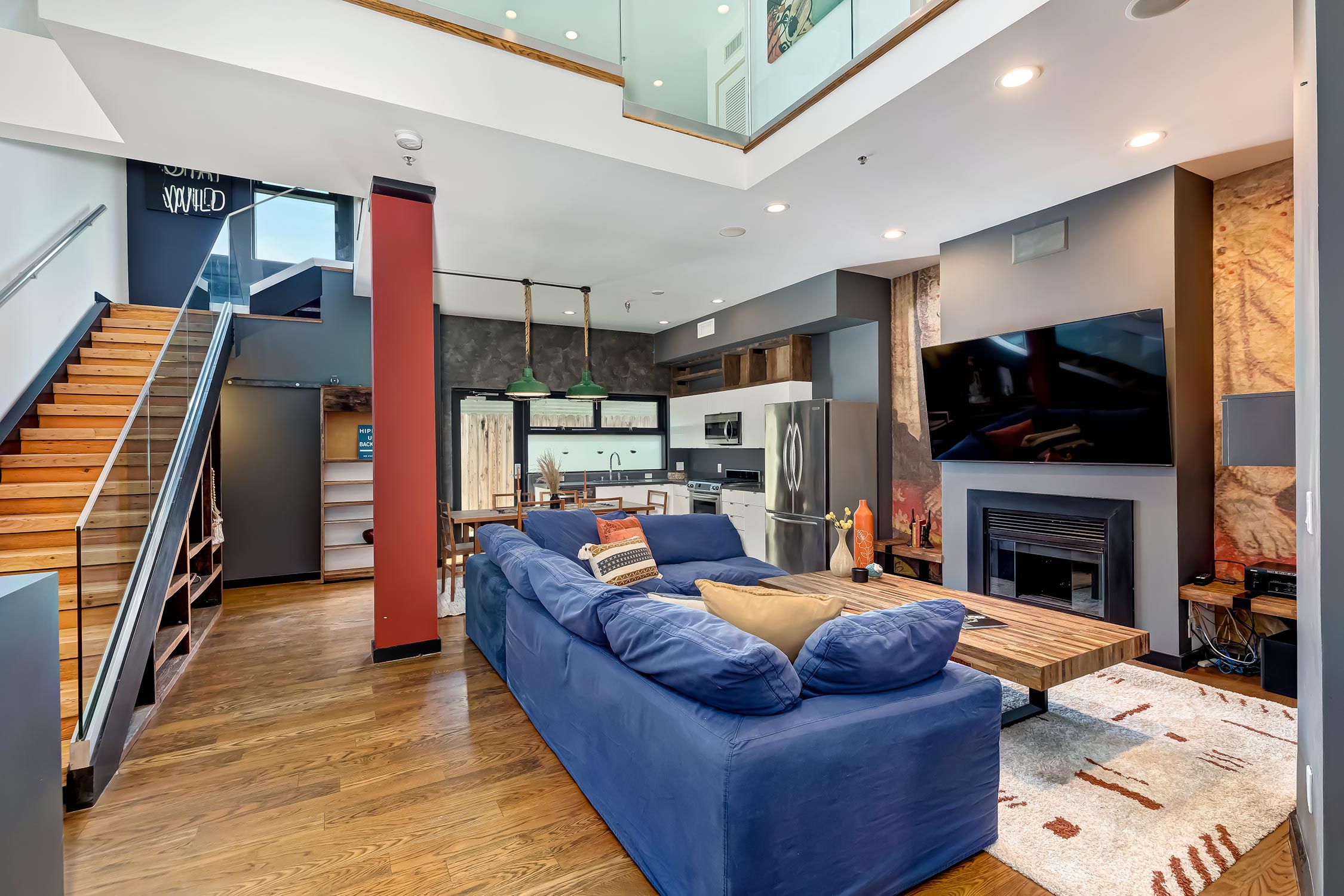 Artistic Live workspace, Furnished rental, One-of-a-kind architectural masterpiece with soaring ceilings, clean lines and drenched in natural light. A true live/workspace in the Dogtown Lofts, this property is situated in a prime Venice location, just off Abbot Kinney, steps to Main St, Gold’s gym and two blocks to the beach. The space is a short walk to some of the finest restaurants and shopping Los Angeles has to offer. The townhome offers a mix of reclaimed wood, glass and open floorplan on three levels. There is Air conditioning, 18' soaring ceilings, and windows that bring in the natural light. Eclectic artwork throughout the house combined with Zen living creates a calming, artist retreat from the outside world. Living area includes comfy sofa, flat screen tv, dining area plus open concept kitchen. Plenty of storage with walk in pantry hidden by bookcase. There is 3/4 bath on this floor. The staircases lead you downstairs to garage or upstairs to a perfectly situated office space. This space has huge office area with floor to ceiling windows. The space includes desk, chair and sitting area to chill or create business magic. There is an area on this floor with queen Murphy bed, flat screen and walk-in closet. The third floor is a private master suite that takes over the entire floor with Cal king bed, large flat screen tv, desk with chair and area for you to unwind or meditate on a large round ottoman. There are double doors that take you to small outdoor balcony surrounded by trees and nature. The master closet is a walk-in with large master bathroom and double vanities. The fourth floor is a roof deck for taking in the sunsets and enjoying the ocean breezes. Downstairs is 2 car private garage with direct access and Tesla plug.